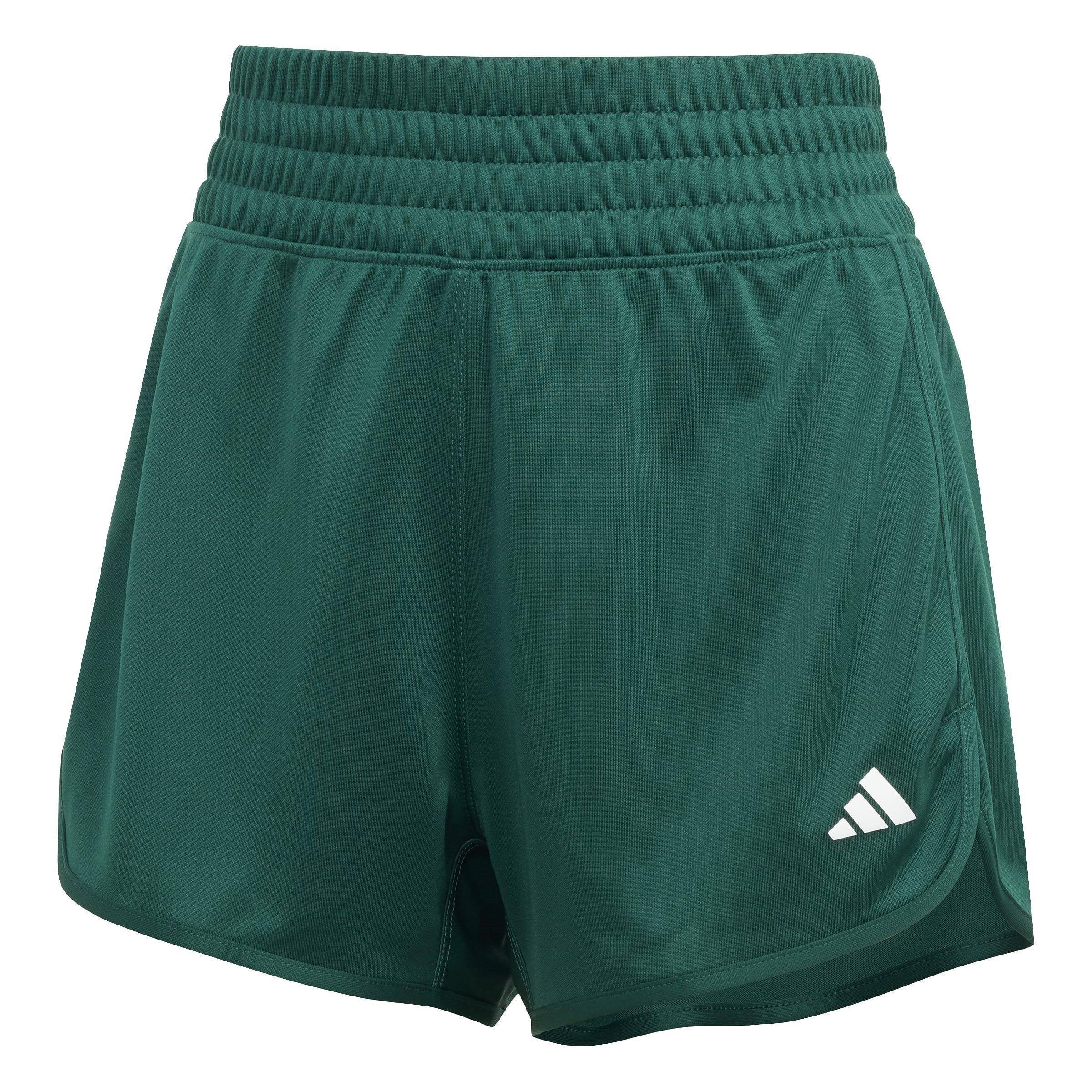 Smash past your personal best with adidas' Pacer Essentials Knit High-Rise Shorts. Designed to support you every step of the way and accented with curved notches at the hem for a retro touch, throw these women's performance shorts on when going for a run or looking to tackle the rowing machines at the gym.