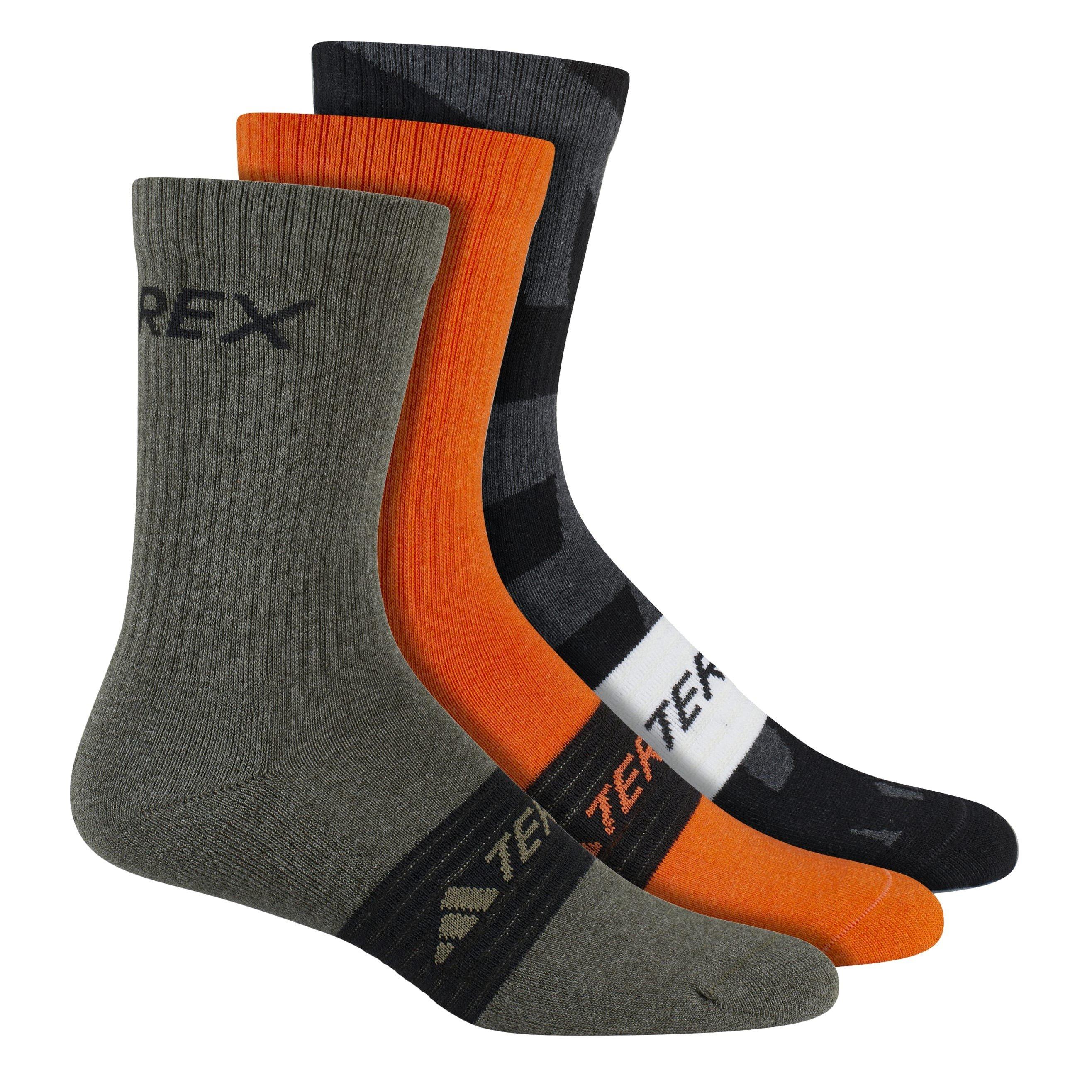 These adidas Terrex socks are made for everyday wear and hut wear. The soft cotton blend wicks sweat and cushioned areas add comfort and durability for indoor wear. Sold in three packs.