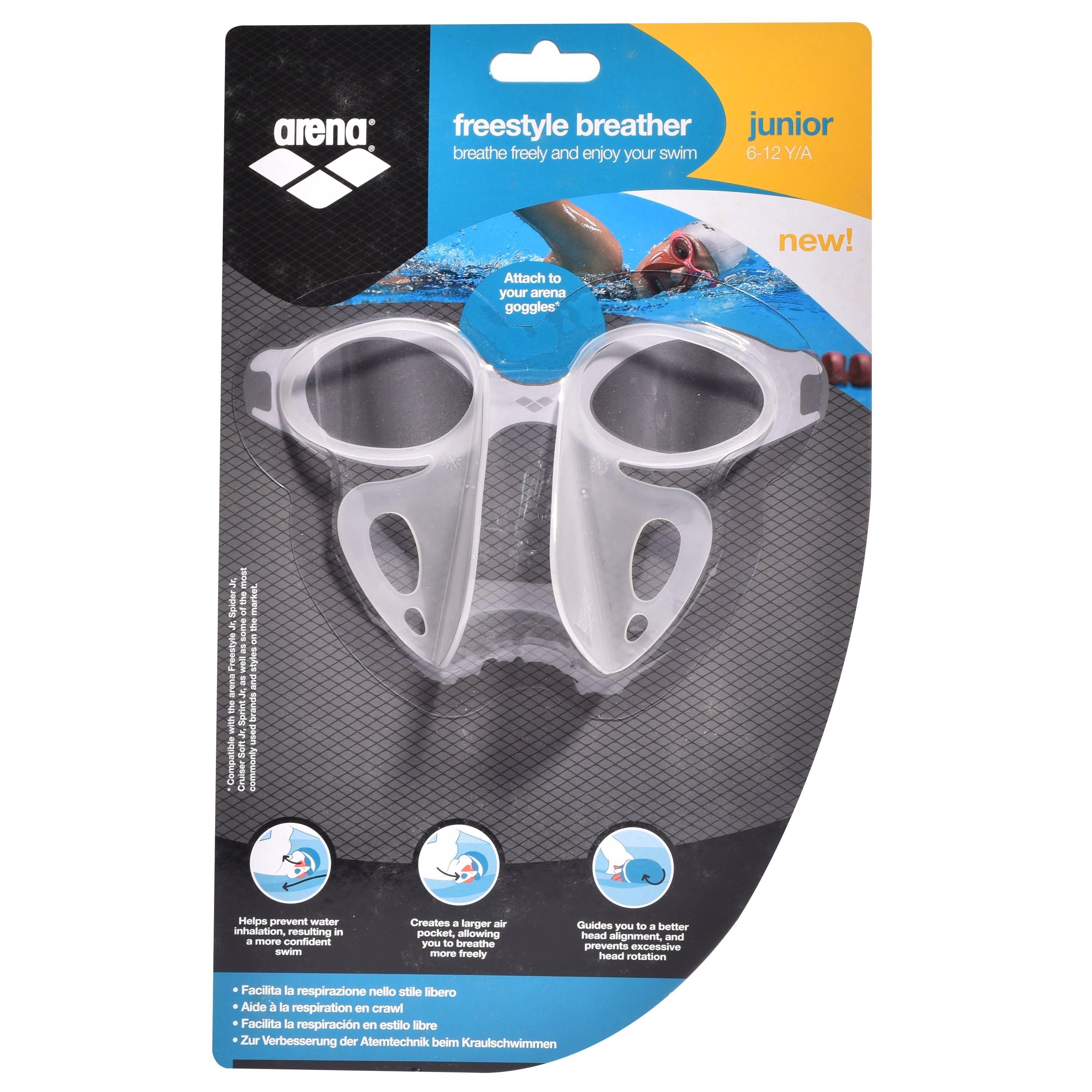 The Arena Junior Breather Kit is a special pair of goggles fitted with removeable sheets that make it easier to breathe while swimming.