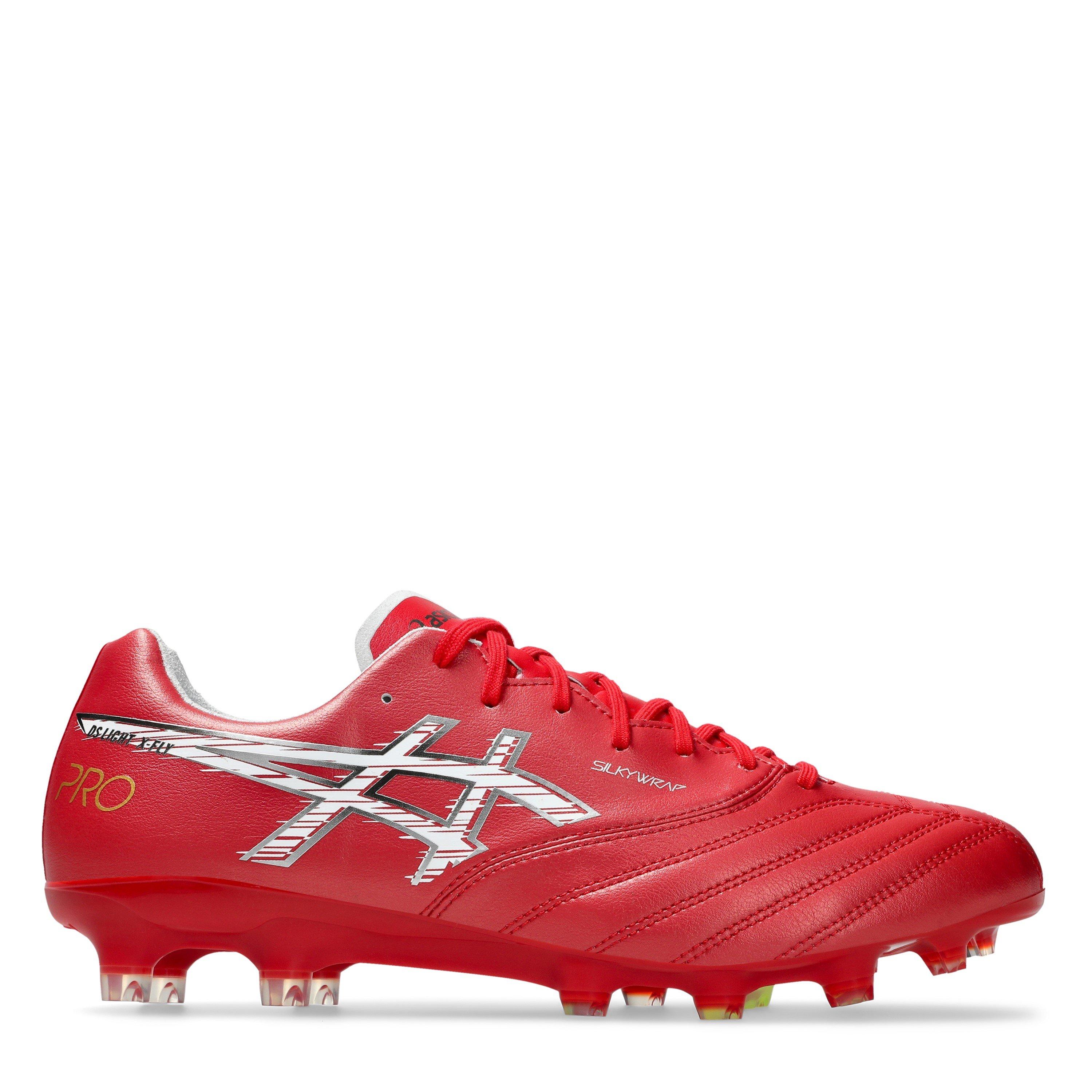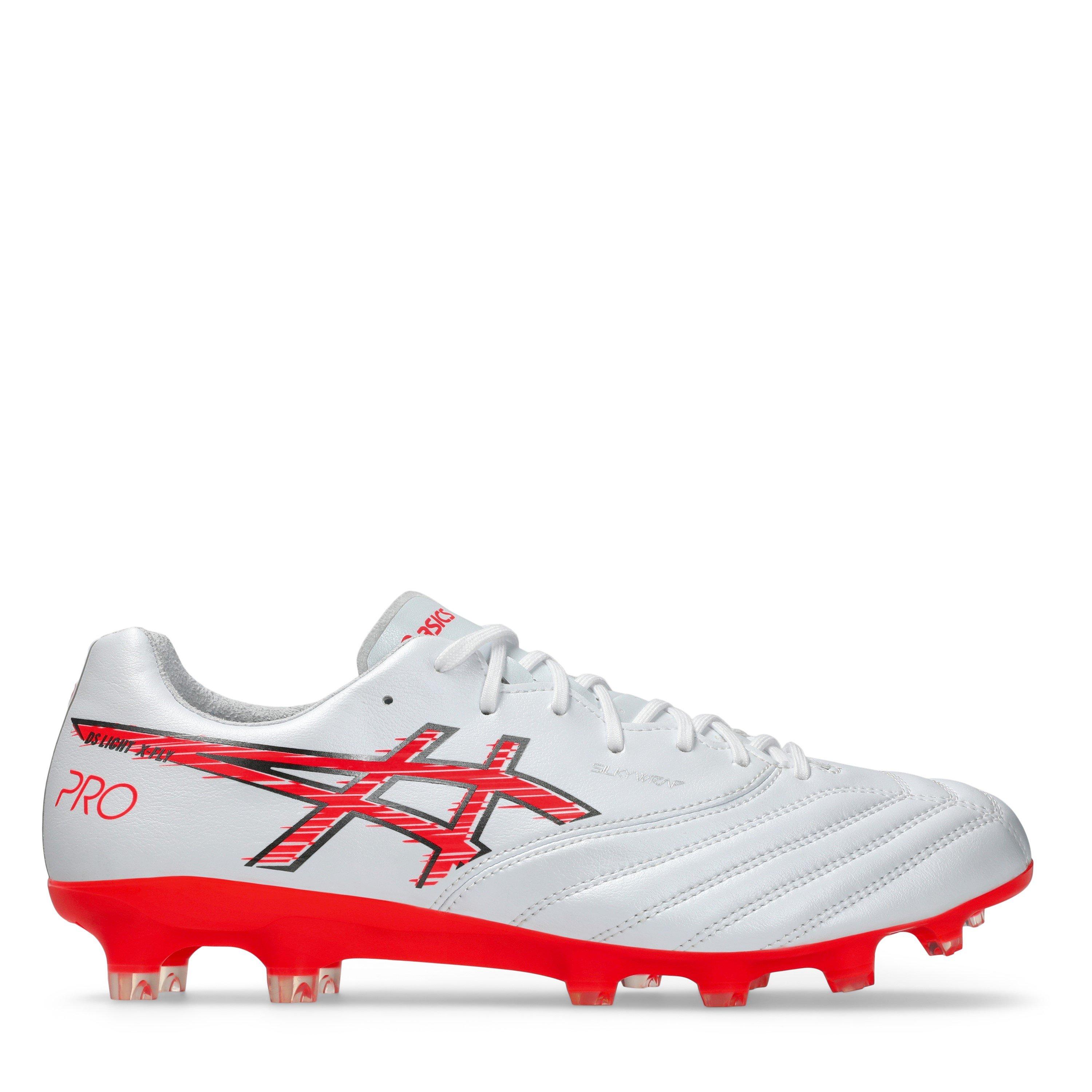 The Asics DS Light X-Fly Pro 3 Firm Ground Boots are high-performance soccer cleats designed for speed, agility, and precision on firm natural grass surfaces.