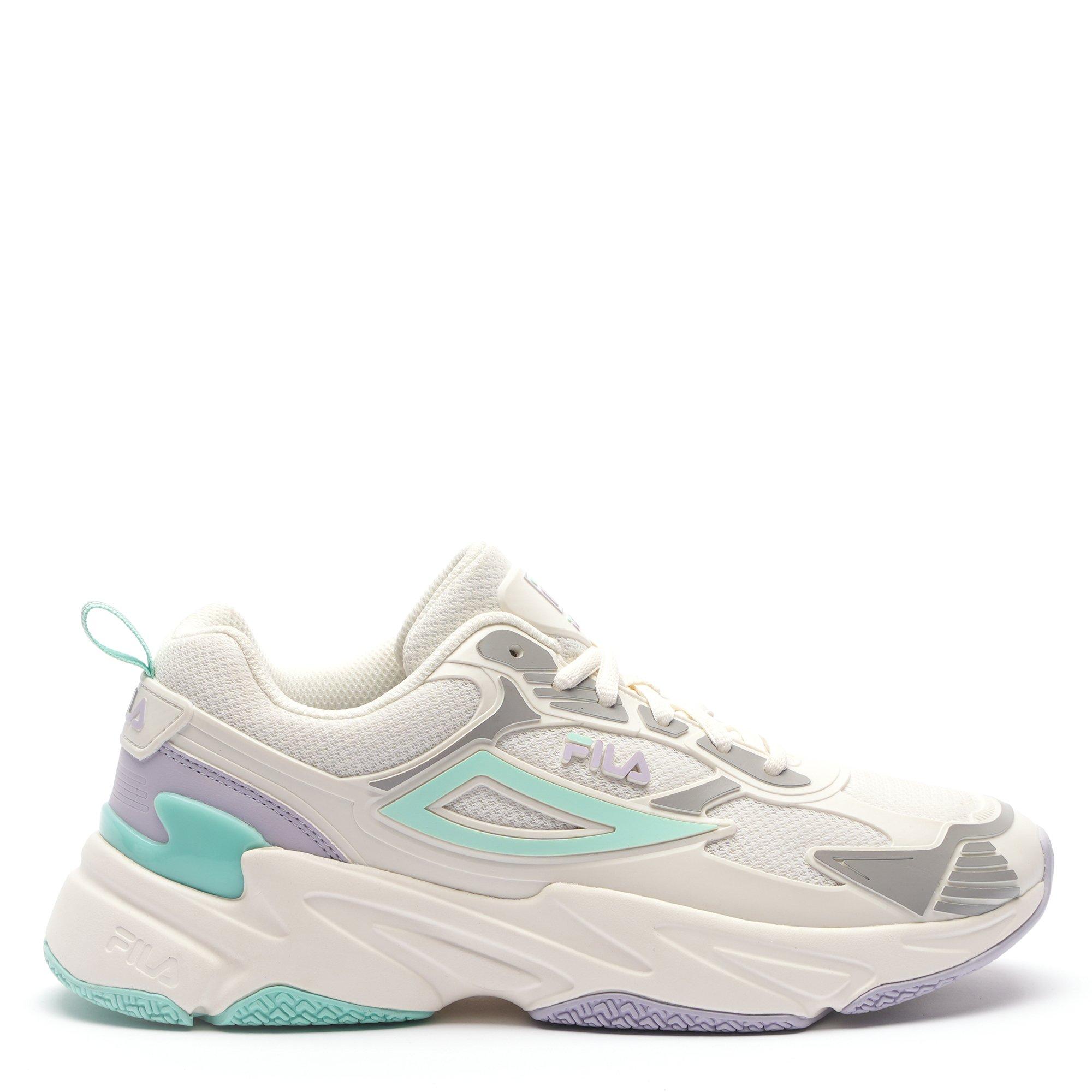 The low-cut silhouette provides a classic, streamlined look, while the distinctive color blocking and Fila branding add a bold, sporty touch.