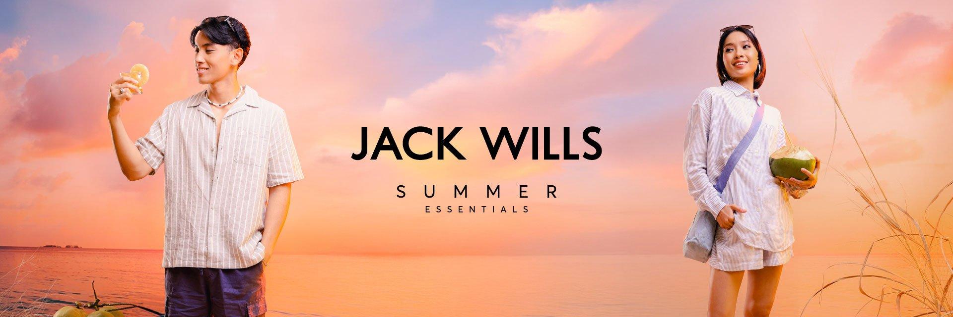 Elevate your everyday wardrobe with our Jack Wills range for men and women. For the ultimate casual look find a selection of logo hoodies and sweatshirts with matching joggers, browse a selection of t-shirts and shorts for a fresh off duty attire or take it up a notch with an assortment of shirts, polo shirts and knitwear. For colder days wrap up in one of our coats and jackets from the brand’s classic gilets to trench coats complete with the perfect footwear choice including boat shoes, trainers and boots. Whatever sport you’re into, we’ve got you covered with a selection of stylish athleisure wear and swimwear.
