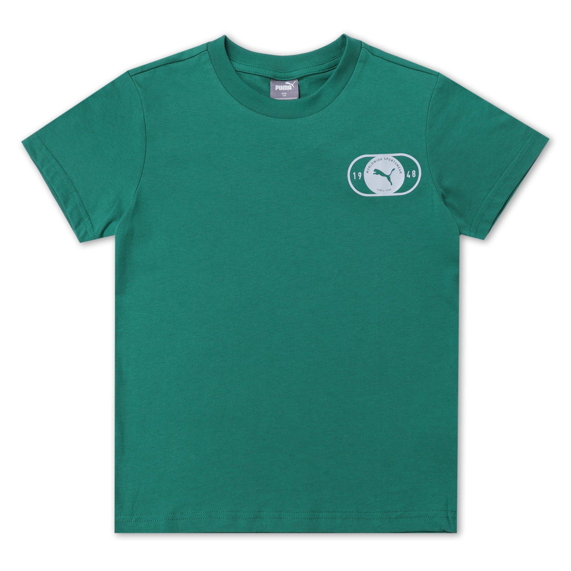The Puma Kids' T-Shirt offers a regular fit that delivers reliable comfort for everyday wear. Graphic detailing creates a bold look across the front, bringing recognisable style to this leisure-ready piece.