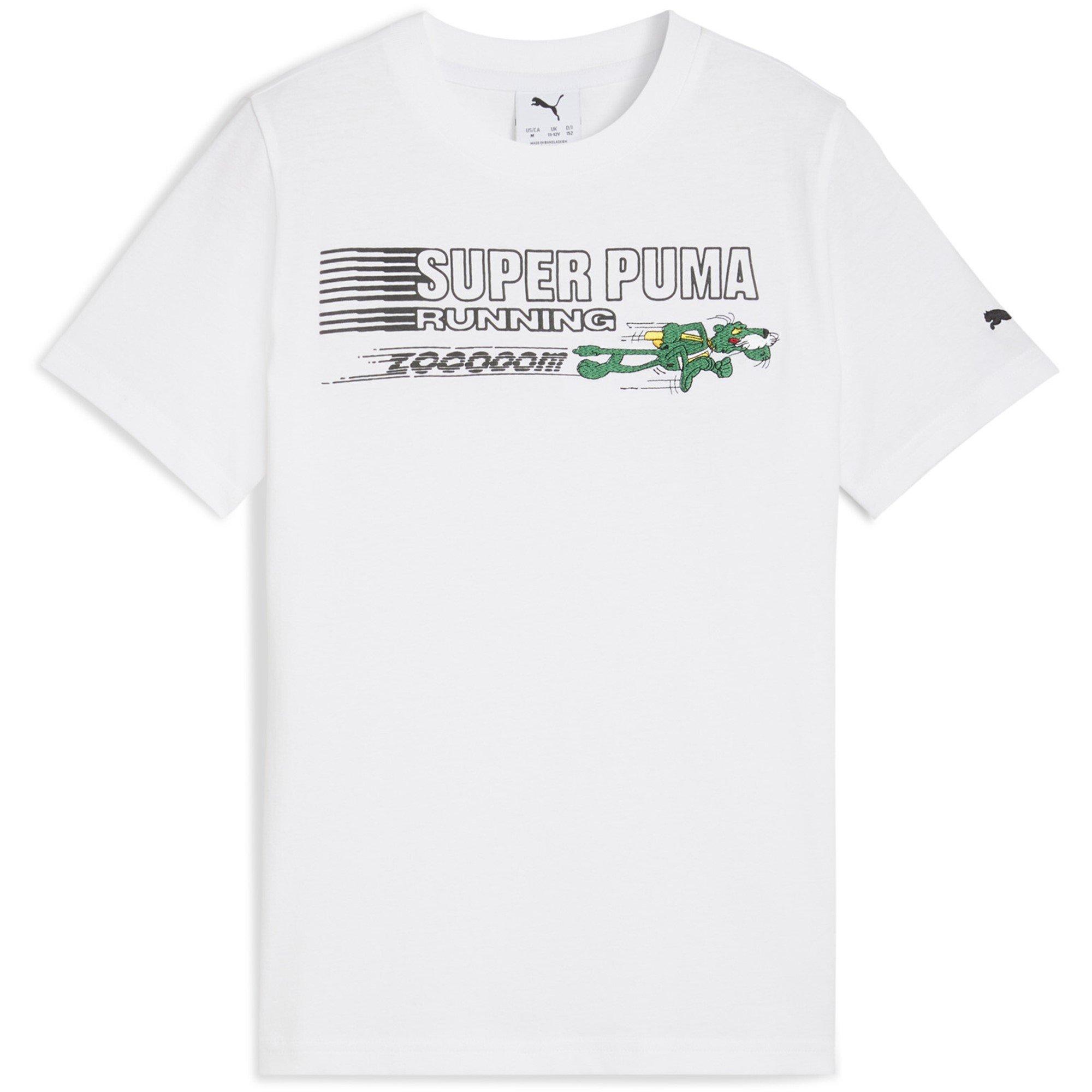 The Puma Kids' Super Graph T-Shirt keeps everyday wear simple with a regular fit that moves easily through active days. Designed for leisure comfort, this tee features reliable durability with clean style.