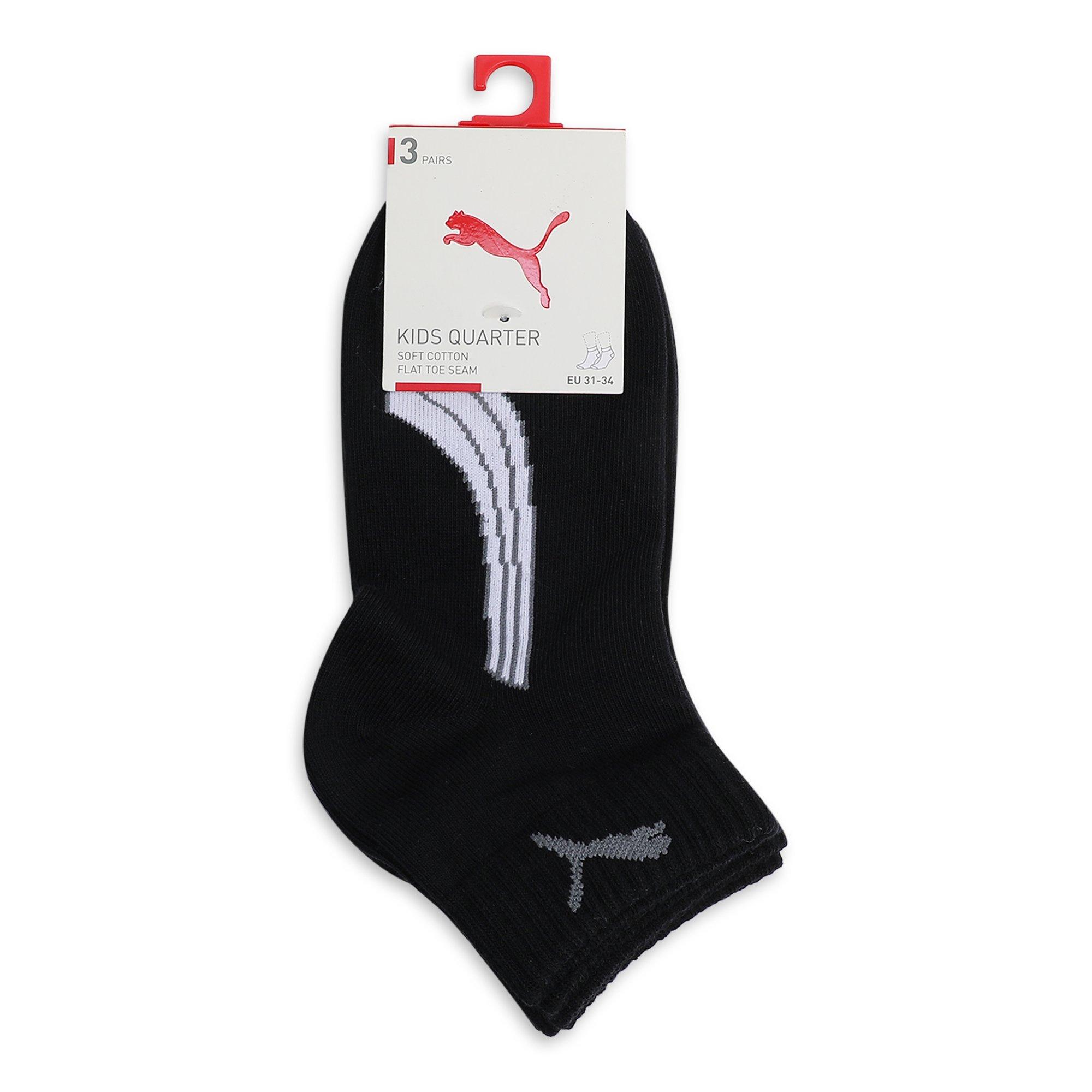 The Puma Quarter Socks deliver comfort and coverage for everyday wear. This three-pack offers a practical solution for active days, with a quarter-length design that sits just above the ankle.