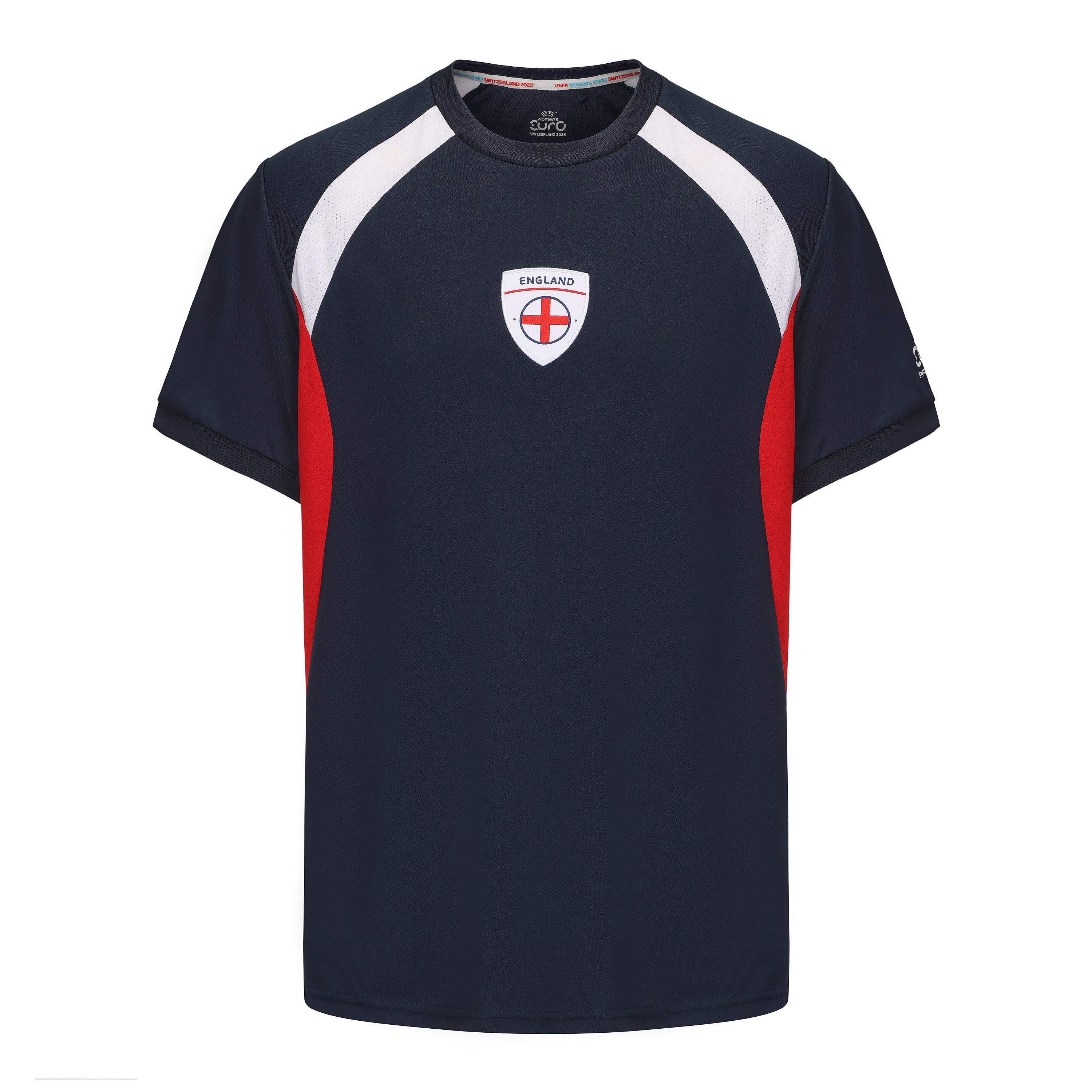 Back the Three Lions in comfort with the UEFA Euros 2025™ England T-Shirt. Designed in a regular fit for ease of movement, it features breathable fabric for maximum ventilation on and off the pitch. Finished with the England badge on the chest for a proud touch. Perfect for matchdays, training sessions, or showing your support in everyday style.