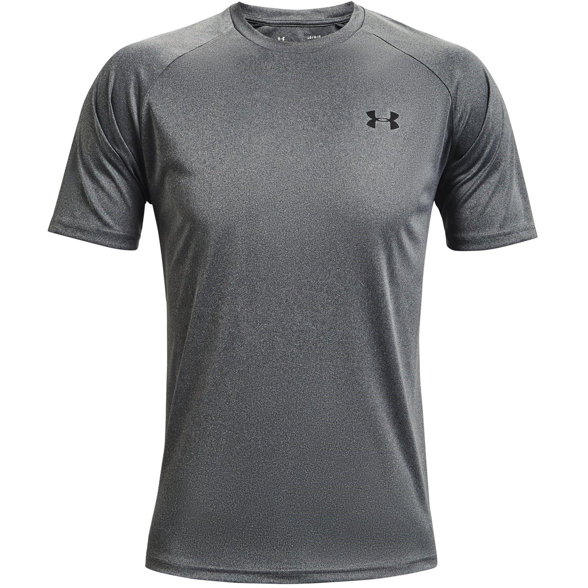 Add a versatile staple to your active wear with this basic tee from Under Armour. Designed with block colouring throughout, this piece is designed with a small graphic on the front representing the brands iconic logo and their overall simplistic aesthetic. Made from a Polyester construction for a lightweight and breathable finish to optimise performance.